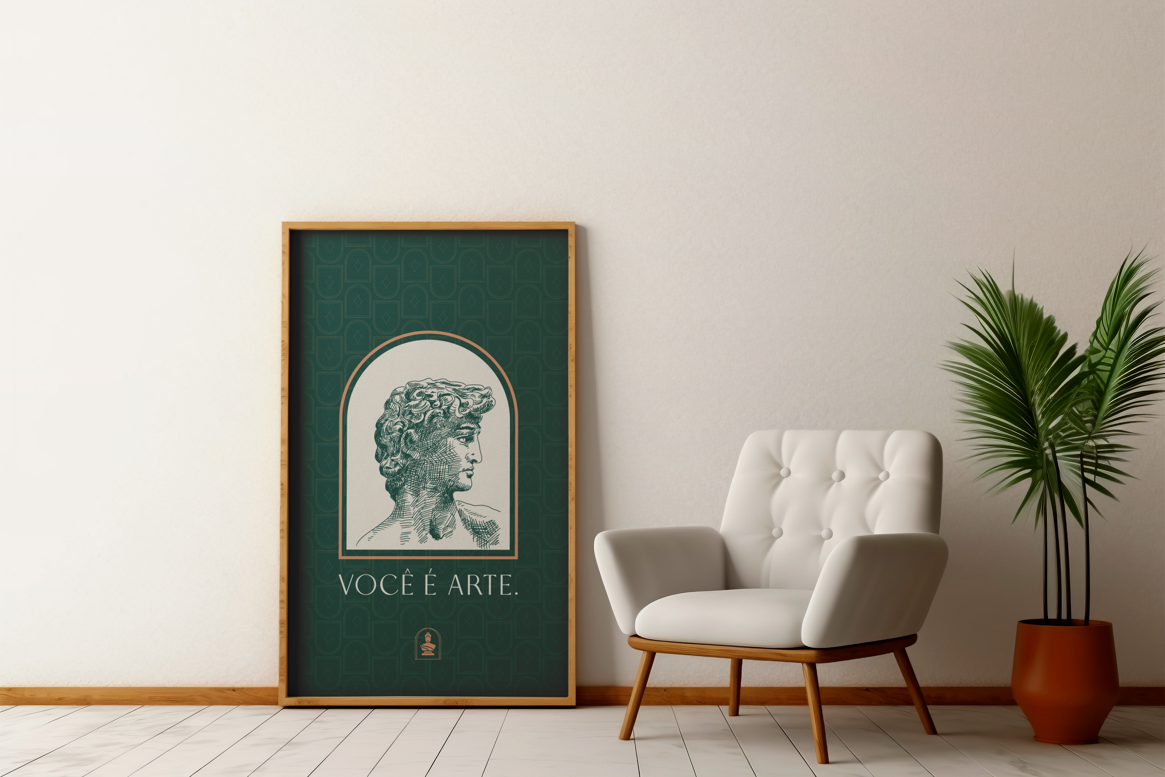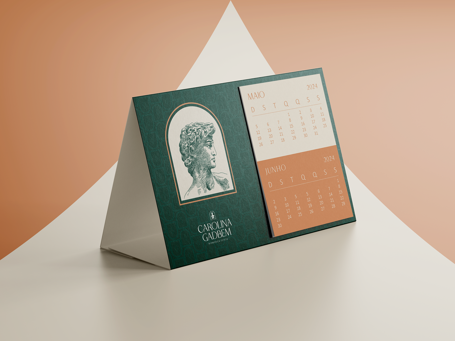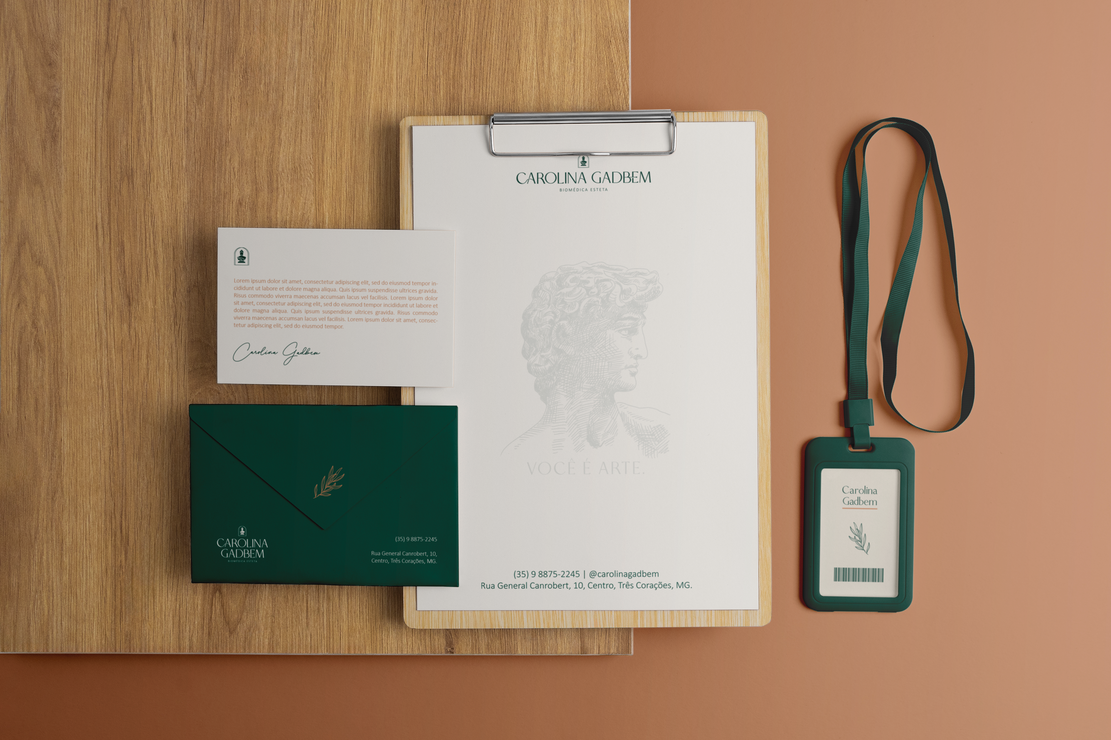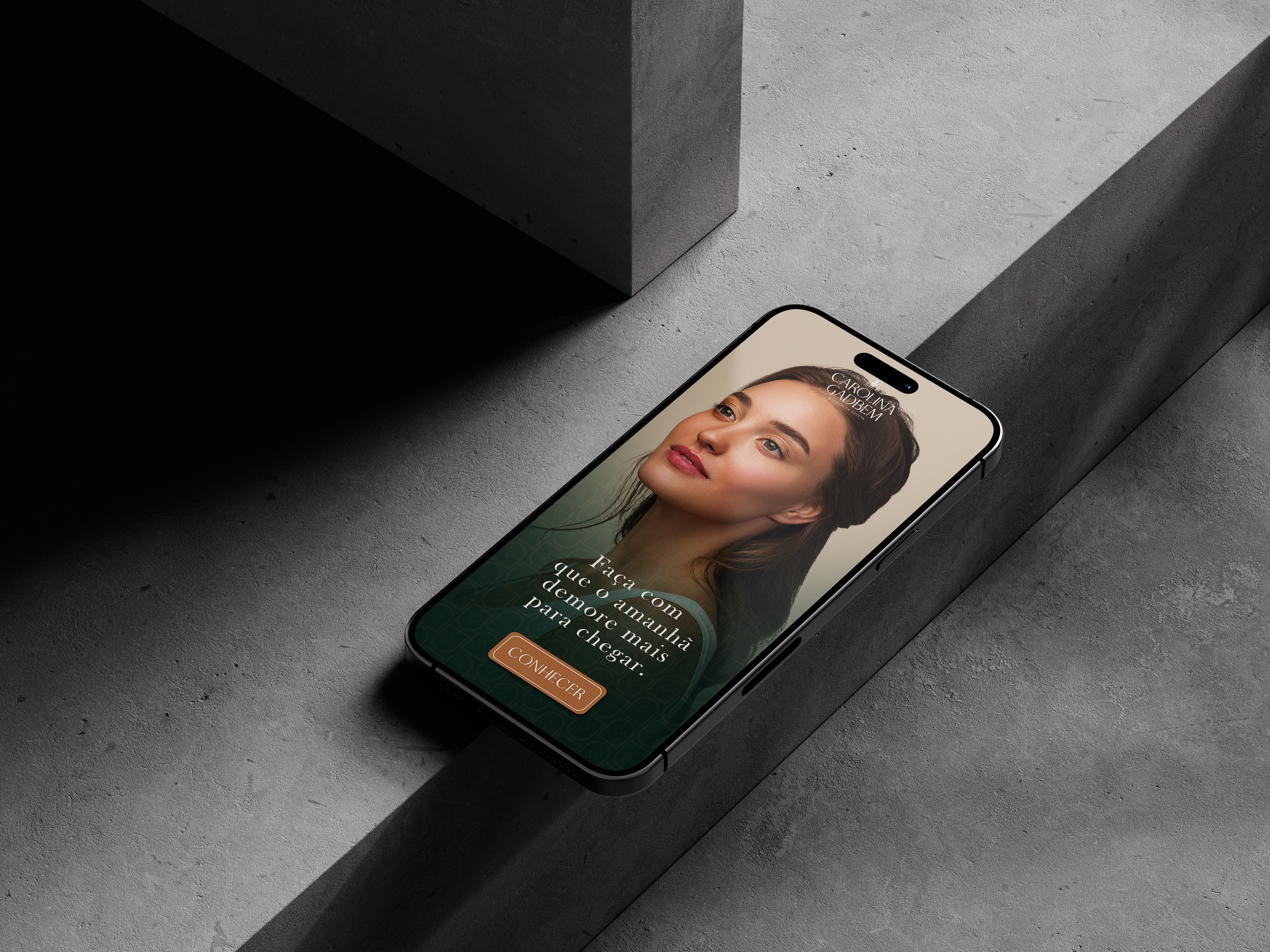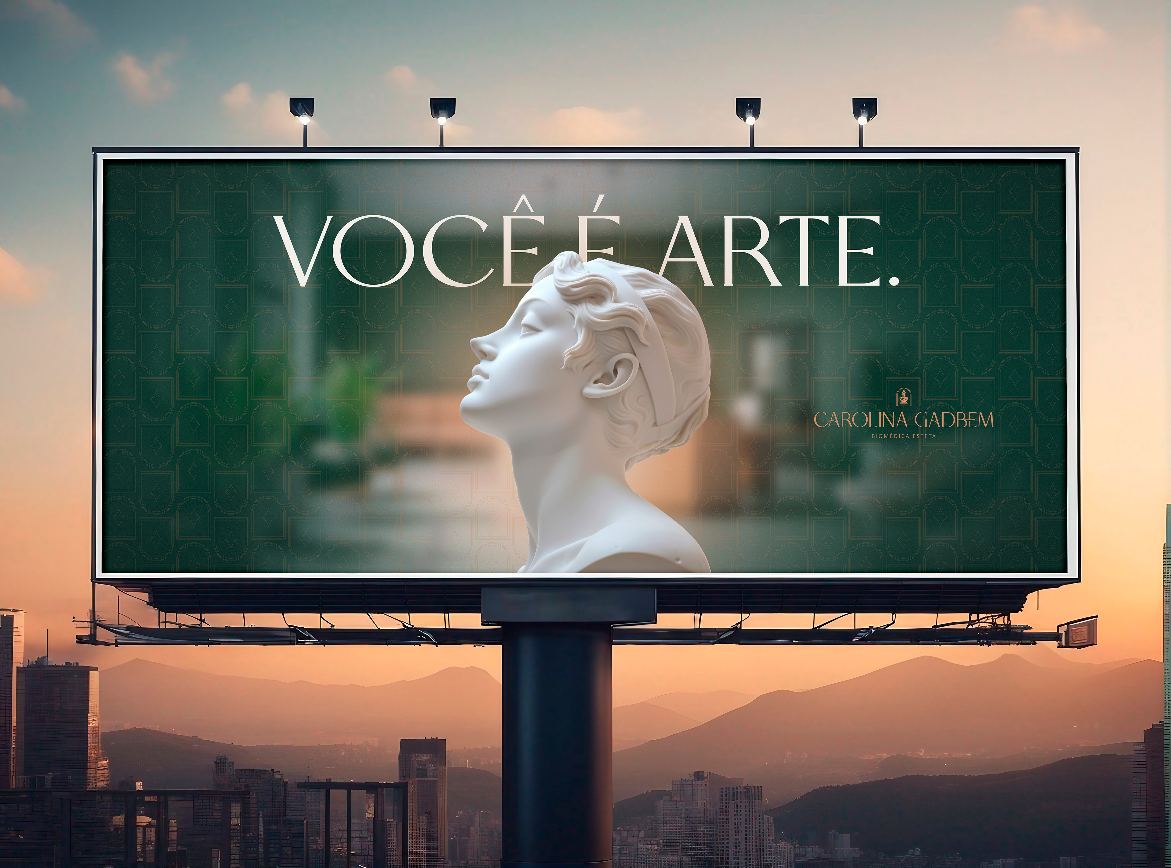 Following this line of thought, and also what Carolina herself said about “polishing the lines without altering them”, the entire design was developed around the idea that Michelangelo's phrase, “I saw an angel in the block of marble and I simply sculpted it until I freed it.”, he tells us that the beauty is already there, you just need to polish it, sculpt it. The visual identity was built around this idea, placing the client as art to be modeled by the artist.